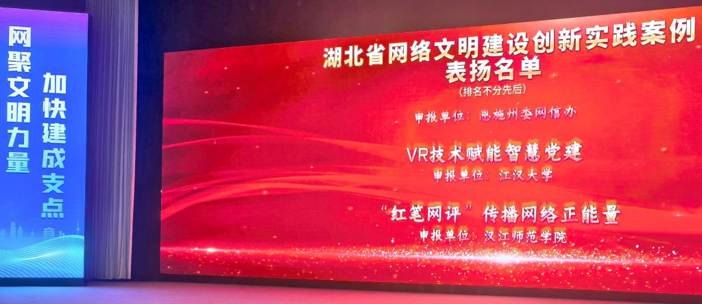10月11日,2025年湖北省网络文明宣传月启动仪式在武汉举行。启动仪式上,省委网信办发布了湖北省网络文明建设创新实践突出案例,对50个案例进行通报表扬。汉江师范学院培育、申报的网络空间文明创建案例《“红笔网评”传播网络正能量》榜上有名。谈到创建“红笔网评”的初衷,党委常委、宣传部部长梁仕新介绍,早在2014年2月,习近平总书记就提出建设网络强国的战略目标,学校围绕这个目标,紧紧把握“互联网+”时代脉搏,始终...